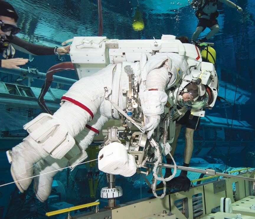 4. Endurance in Heavy Gear : To replicate spacewalk circumstances, astronauts exercise in big pools (Neutral Buoyancy Labs) while wearing full spacesuits, which can weigh more than 100 kg on Earth.